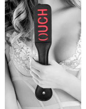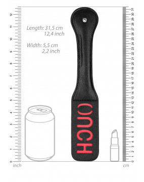 Słowo OUCH jest odwrócone, więc będzie poprawnie pokazywać się na skórze.