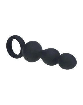 Beaded Silicone Anal Probe with Loop - Black