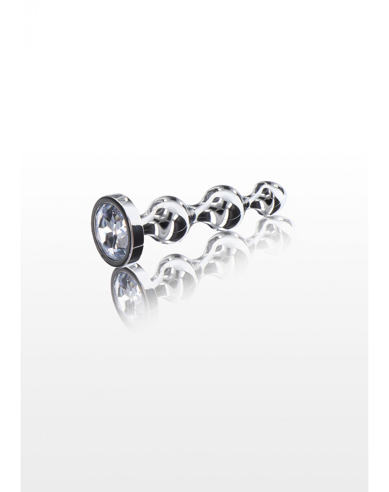 Diamond Star Beads to wysokiej jakości zatyczka analna ze srebrnym klejnotem w podstawie, która sprawi, że Twoje tylne drzwi będą świecić jasno! Ten elegancki korek analny zapewnia niesamowitą stymulację dzięki 3-krotnie powiększającym się koralikom analnym i rozszerzonej podstawie, wzmocnionej klejnotem. Wykonane z aluminium koraliki Diamond Star Beads są gładkie i całkowicie bezpieczne dla ciała. Must-have z kolekcji Anal Play marki TOYJOY. To idealna zatyczka unisex, która doda czarującego akcentu Twoim analnym przygodom.
