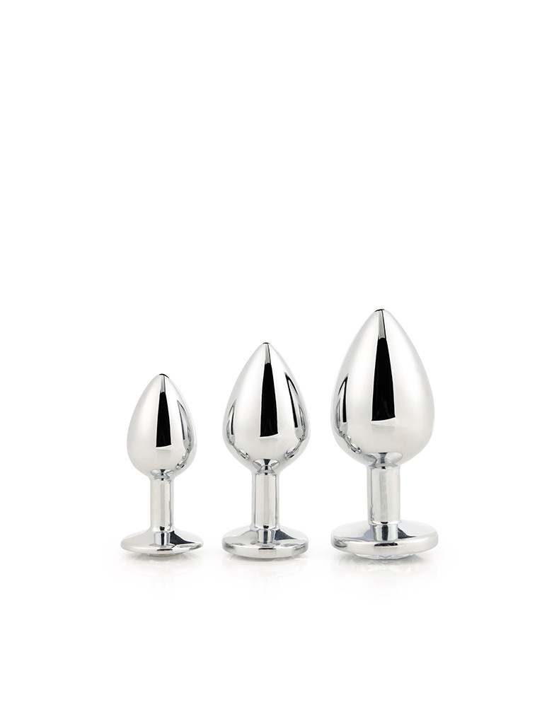 Kolekcja Gleaming Love przedstawia ten zestaw błyszczących zatyczek analnych w 3 rozmiarach, każdy z kamieniem szlachetnym. Te przyjemne zabawki są wykonane z gładkiego, lekkiego aluminium i bez szwu, dzięki czemu są łatwe do przesuwania, a rozkloszowana podstawa zapewnia poczucie bezpieczeństwa, jednocześnie utrzymując klejnot wygodnie między policzkami pośladków.