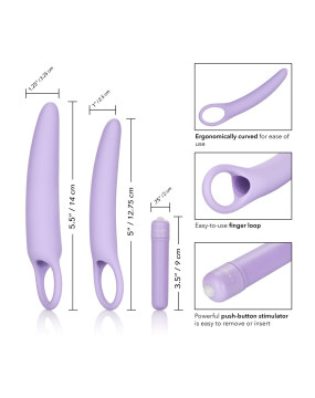 Wyjątkowo zaprojektowane rozszerzacze są ergonomicznie zakrzywione i stopniowo dobierane, aby delikatnie zwiększyć komfort wstawiania, poprawić elastyczność pochwy i ożywić podniecenie seksualne. Silikonowe sondy premium mają trwałą pętlę na palce, która zapewnia delikatne wkładanie i pustą komorę do przechowywania silnego wibratora pocisku. Zestaw stopniowany został stworzony, aby odmłodzić mięśnie pochwy i zmniejszyć dyskomfort przy wkładaniu przy każdym użyciu. Połącz ze zwartą kulą, aby wzmocnić stymulację i zwiększyć pobudzenie. Wzmocnij namiętny mini klimat dzięki jednej baterii AAA. Użyj małego rozszerzacza, aby zacząć, a gdy będziesz delikatnie ćwiczyć i zwiększyć elastyczność mięśni, przejdź do większych sond. Średni ćwiczący mierzy 5 ”x 1” (12,75 cm x 2,5 cm), większy ćwiczący ma 5,5 ”x 1,25” (14 cm x 3,25 cm), a pocisk stymulatora ma 3,5 ”na 0,75” (9 cm x 2 cm) . Hipoalergiczny silikon premium jest bezpieczny dla ciała, bezzapachowy i nie zawiera ftalanów, aby zapewnić Ci najbardziej wrażliwe miejsca, szczęśliwe i zdrowe.