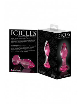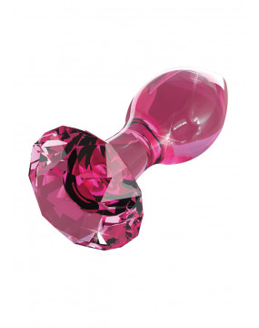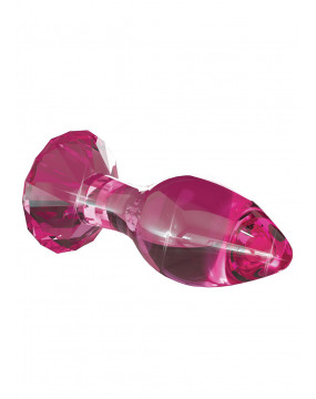 Różowa wtyczka w kształcie stożka z korkiem wykonanym ze szkła. Korek ma kształt diamentu. Bezwonny, antyalergiczny i bardzo higieniczny - można go łatwo wyczyścić - można go nawet włożyć do zmywarki. Całkowita długość 9 cm, głębokość włożenia 6 cm, Ø 3 cm.