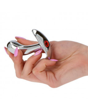 Wtyczka analna z aluminium o kształcie ułatwiającym dotarcie do punktu P. Wklęsła podstawa zapewnia bezpieczeństwo po całkowitym włożeniu, miarki są idealne dla początkujących stymulacji analnych. Z eleganckim klejnotem do dekoracji zabawki.