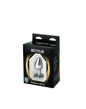 Średni srebrny butt plug z czerwonym diamentem