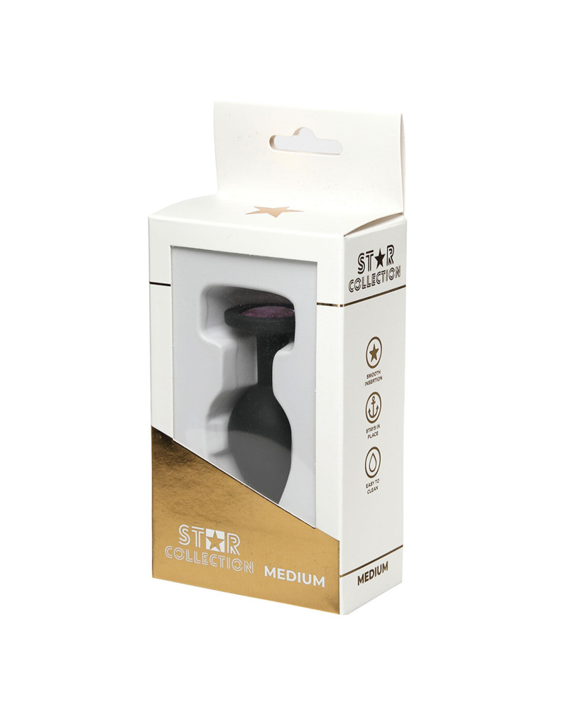 Star Collection - Black Silicone Anal Plug M - Light Pink Stone
