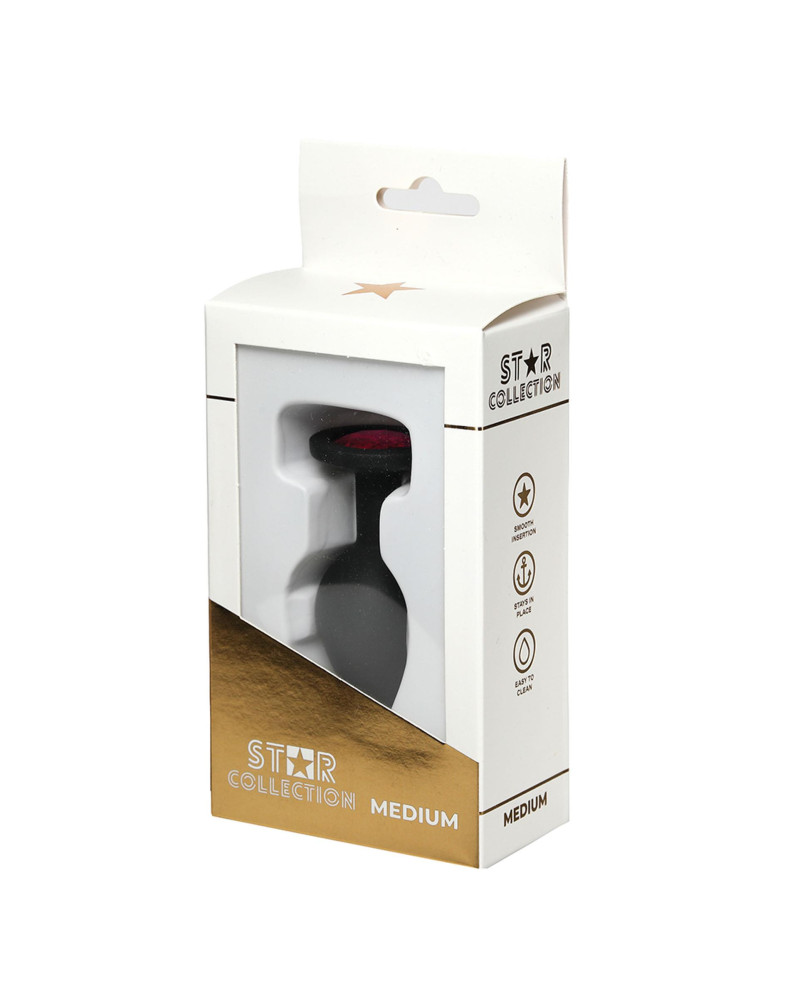 Star Collection - Black Silicone Anal Plug M - Pink Stone