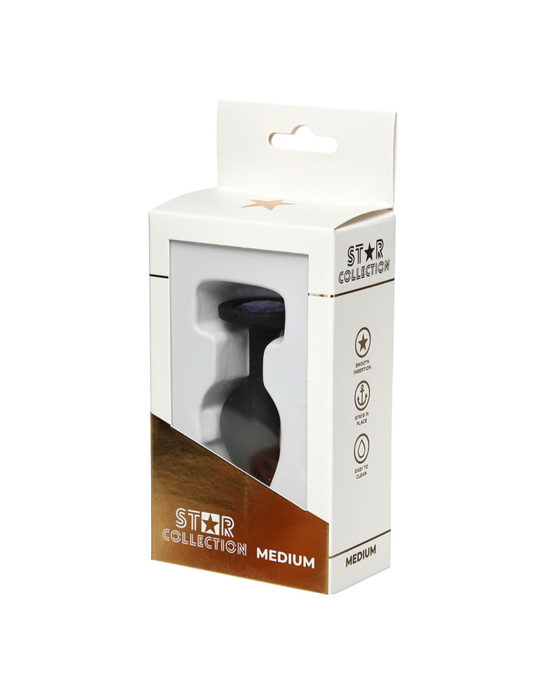 Star Collection - Black Silicone Anal Plug M - Purple Stone