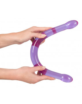 Purple double dong for new sensations: imagine how two lovers penetrate you from the front and from behind at the same time. The slippery material allows an easy and pleasurable penetration. Very flexible for all sex variations. Use it on your own or with your partner. Complete length 44 cm, Ø 2.5-3.2 cm.