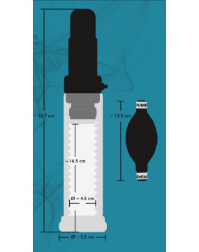 W zależności od tego, jak rurka (o długości 49 cm) na cylindrze jest przymocowana do kulki pompy, powietrze może zostać zassane z pompy penisa (w celu stworzenia skutecznej próżni do treningu penisa / potencji) lub może przepływać do środka przez niesamowity efekt odsysania. Aby uzyskać dodatkową stymulację, możesz także włączyć wibracje żołędzi o wielu prędkościach, które przechodzą z łagodnych na potężne. Całkowita długość 33,7 cm. Przezroczysty cylinder o głębokości 17,2 cm, średnica zewnętrzna 6 cm, z wyjmowanym rękawem w kropki.