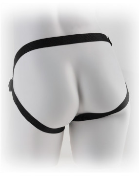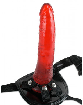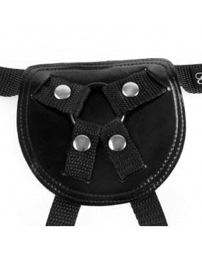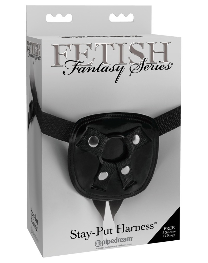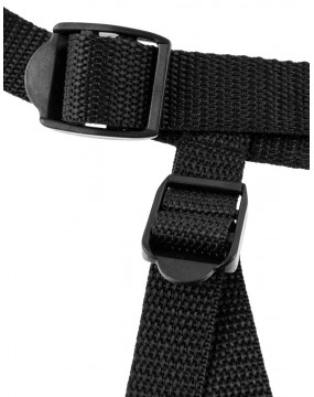 The sturdy harness in a vinyl look makes unlimited pegging fun possible and fulfills lesbian fantasies. It can be used with lots of dildos and vibrators that have a suction cup or base (not included). The 3 included, different sized rings mean that the dildo/vibrator stays securely in place during thrusting movements. The harness can be adjusted around the waist and thighs.