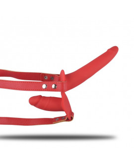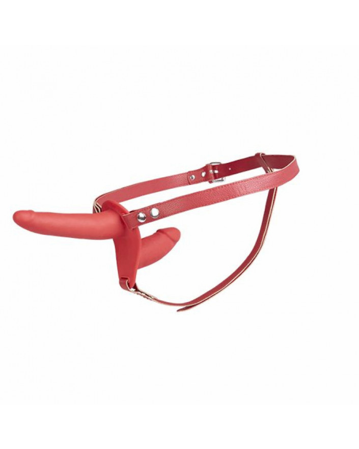 Podwójny pasek na dildo z paskiem, można łatwo regulować i nosić, przeznaczony do podwójnej penetracji. Materiał ze sztucznej skóry, aby zapewnić miękkość w kontakcie z ciałem, kuszącą i zmysłową kolorystykę. Produkt marki Toyz4Lovers, gwarancja w sektorze rozrywki dla dorosłych. Bez ftalanów.
