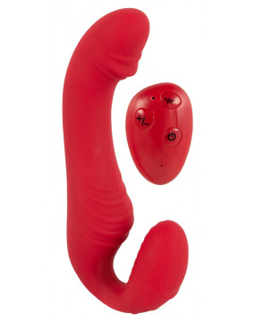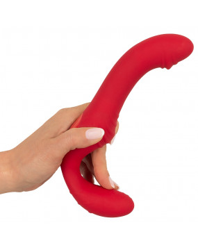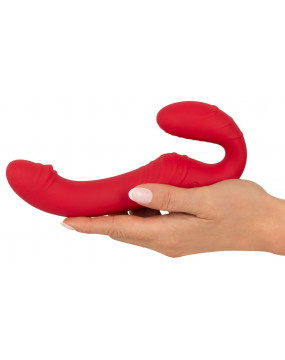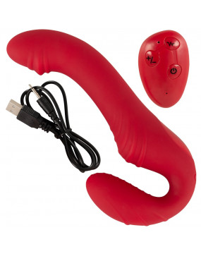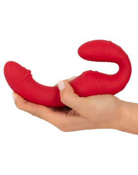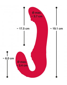 Strapless RC Strapless Strap-On 3 from You2Toys with a flexible double vibrator. The short, grooved vibrator should be inserted into the vagina and it is held in place using the vaginal muscles. Then the partner can be penetrated with the longer, textured vibrator.