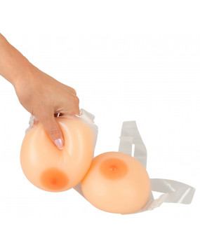 Strap-on Silicone Breasts from Cottelli Collection Accessoires that are perfect for small breasts because they have a small indentation. Each breast has a weight of 400 g and they also have nipples. The breasts are fixed to the bra individually and because of that they look extremely realistic.