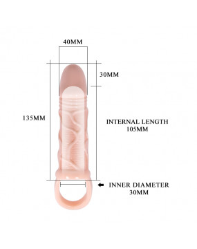 Materiałowy rękaw na penisa TPR posiada rozciągliwy trzon dla lepszej wewnętrznej stymulacji. Bardzo polecany rękaw na penisa, który zapewnia dodatkową teksturę penisa. Aby uzyskać naturalny wygląd, podstawa zawiera pierścień kulkowy, który przylega do podstawy kulek i zapewnia efekty przedłużenia erekcji.