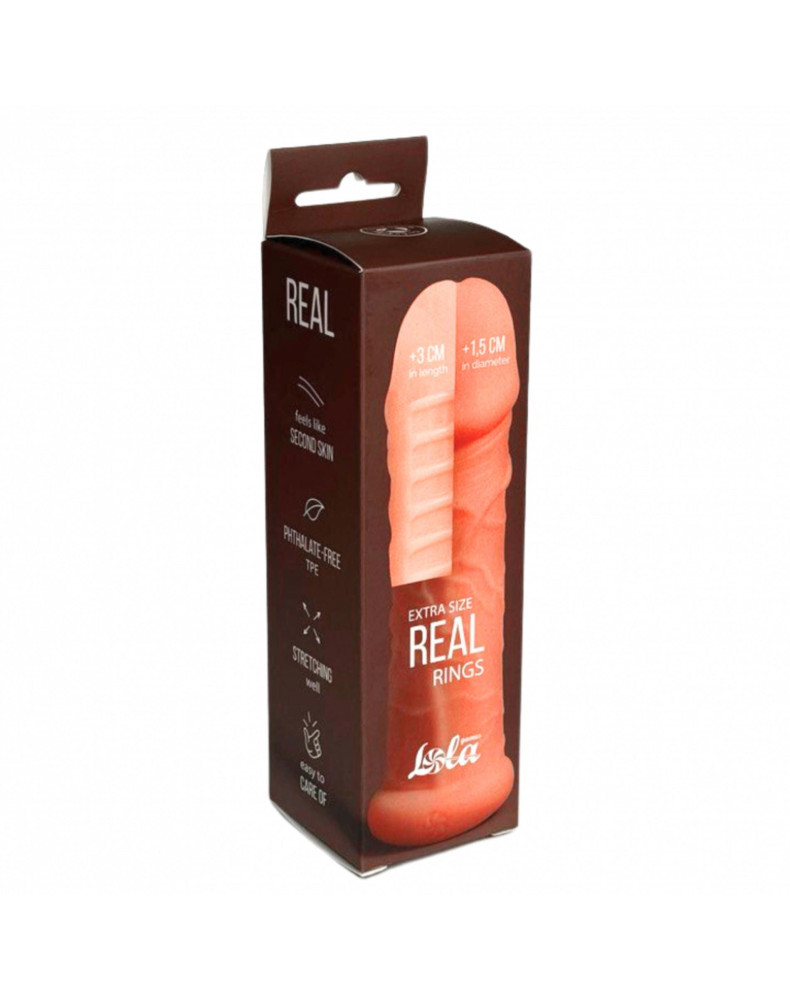Nakładka Real Extra Size zapewnia doskonałe dopasowanie, nie zsuwając się ani nie przeszkadzając, dzięki czemu podkreśla naturalny ruch i intensyfikuje przyjemność dla obojga partnerów.