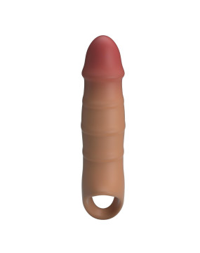 Zwiększ rozmiar swojego penisa dzięki nakładce Pleasure Penis Sleeve i ciesz się realistyczną przyjemnością. Wykonana z ultrarealistycznego materiału, zapewnia wrażenia zbliżone do prawdziwego kontaktu skórnego. Zewnętrzna powierzchnia pokryta jest wypukłymi, realistycznymi żyłkami oraz zakończona wyraźną, zaokrągloną główką, dzięki czemu Twój partner lub partnerka doświadczy naturalnych, intensywnych doznań. Wewnętrzny kanał jest gładki i elastyczny, co pozwala mu ściśle otulać erekcję i zapewnia maksymalny kontakt oraz stymulację. Idealny wybór dla tych, którzy chcą pogłębić przyjemność i zwiększyć bliskość w intymnych chwilach. Materiał: ultrarealistyczny TPE Tekstura: żyłkowana powierzchnia z główką, gładkie wnętrze Funkcja: zwiększenie rozmiaru i stymulacji