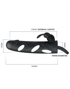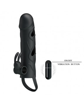 Nakładka na penisa wykonana z silikonu medycznego o jedwabistej powłoce. Łatwo dopasowuje się do większości rozmiarów członka. Element wibrujący stymulujący łechtaczkę przynosi dodatkowe, ekscytujące doznania zarówno partnerce, jak i partnerowi. Nakładka poprzez mocowanie na jądra, zapobiega przed suwaniem się jej z członka. Dzięki temu możesz bez obaw pozwolić sobie intensywniejszy sex. Nakładka wielokrotnego użytku, rozmiar uniwersalny. Czas działania baterii 45min.