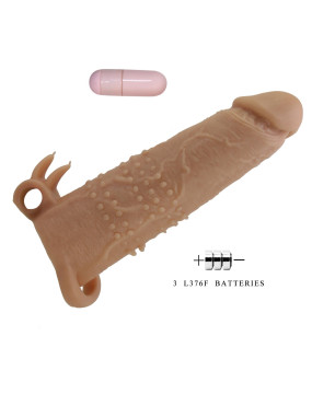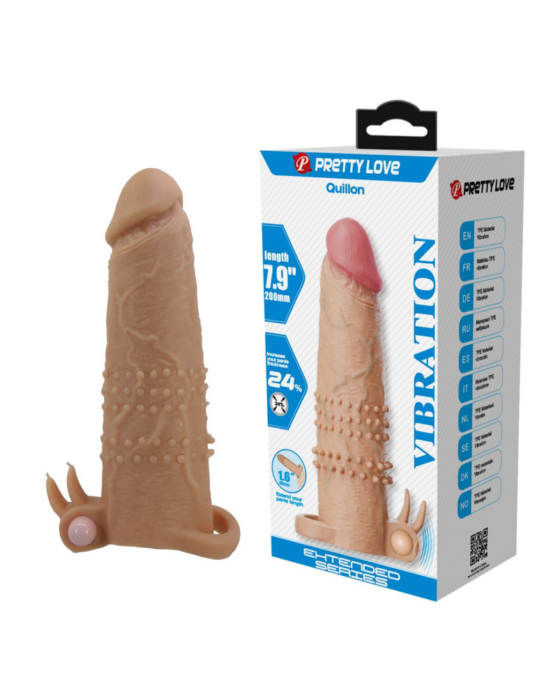 Pretty Love Vibrating Cock Sleeve to zaawansowana nakładka na penisa i przedłużenie długości, stworzone z myślą o mocniejszej erekcji i intensywniejszych doznaniach. Długość 17 cm (6,7 cala) oraz solidna końcówka zapewniają odczuwalne wydłużenie, gdy chcesz dodać sobie pewności i siły. Wykonana z gładkiego, elastycznego TPR, gwarantuje komfortowe, realistyczne odczucia i stabilne dopasowanie. Pętla na jądra utrzymuje nakładkę na miejscu, pomagając utrzymać twardszą i dłużej trwającą erekcję. Wbudowany wibrujący bullet reaguje na każdy ruch, zapewniając dodatkową stymulację i wzmacniając wspólne doznania. Wibracje zostały zaprojektowane tak, aby precyzyjnie stymulować łechtaczkę, potęgując przyjemność partnerki. Idealny wybór dla par, które chcą zwiększyć intensywność, wydłużyć grę i odkryć nowe poziomy satysfakcji.