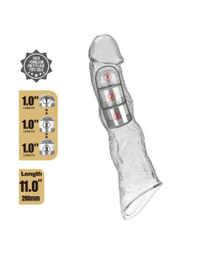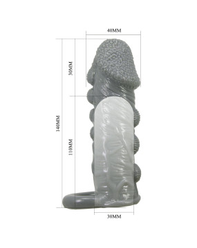 Nakładka na penisa nadająca grubości narządom płciowym. Wykonana z elastycznego, gładkiego materiału, przedłuży stosunek płciowy i wpłynie na strefy erogenne kobiecej pochwy. Wibrująca wypustka w podstawie dodatkowo pobudzi prącie i strefę łechtaczki. Ta nakładka ma piękny, niepowtarzalny design, idealny do zmysłowej stymulacji. Produkt wykonany jest z silikonu, który jest niezwykle przyjemny w dotyku i rozciągliwy.