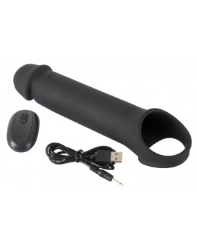 This flexible penis sleeve with its soft touch texture helps the penis get into shape so that it can provide fulfilling moments of pleasure. The solid glans also extend the penis by 8 cm. The tight-fitting, erection-supporting sleeve gets placed over the penis and the ball ring makes sure that it fits securely and comfortably – it also stops it from slipping off as well. The 10 diverse vibration modes can be easily adjusted via the remote control – it can also be used by a partner as well because it has a range of 12 metres. It can be recharged with the included USB cable. Includes a battery (27A) for the remote control.