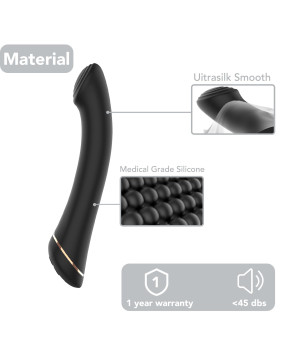 Ergonomicznie idealnie zakrzywiony wibrator ze spłaszczoną końcówką specjalnie do ukierunkowanej stymulacji punktu G. Miękki i jedwabisty, elastyczny silikonowy wibrator doskonale zagłębia się w dłoni.