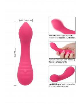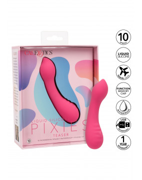 Liquid Silicone Pixies Teaser został zaprojektowany, aby zapewnić uczucie drżenia kolan w twoich ulubionych punktach przyjemności. Zmysłowo zakrzywiona przyjemna końcówka, dwustronna konstrukcja i 10 porywających prędkości wibracji sprawiają, że jest to idealny kuszący towarzysz podróży. Zakrzywiony masażer mieści się w dłoni, umożliwiając precyzyjne kuszenie i dreszczyk emocji dzięki wyprofilowanym wibracjom. Baw się z każdym zwiększeniem 10 przyrostowych prędkości wibracji za pomocą łatwego w obsłudze przycisku sterującego. Bez wysiłku kontroluj czystą przyjemność za pomocą łatwego w dotyku silikonowego przycisku i przytrzymaj przez 3 sekundy, aby włączyć lub wyłączyć. Niezwykle miękki płynny silikon i wyjątkowo elastyczna końcówka doskonale nadają się do łatwego odkrywania zmysłowych słodkich miejsc i intymnych punktów przyjemności. Dzięki gładkiemu kształtowi i elastycznej powierzchni będziesz mógł rozkoszować się ekscytującymi wibracjami pod dowolnym kątem. Użyj płynnego sterowania jednym przyciskiem, aby cieszyć się nawet 110 minutami wibrującej przyjemności. Naładuj swoją pasję w zaledwie 1,5 godziny, podłączając dostarczony kabel USB do samouszczelniającego się portu ładowania w podstawie masażera. Dyskretny rozmiar smukłego masażera czyni go idealnym towarzyszem podróży, pozwalając cieszyć się promieniującą przyjemnością, gdziekolwiek zaprowadzą Cię fantazje.