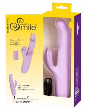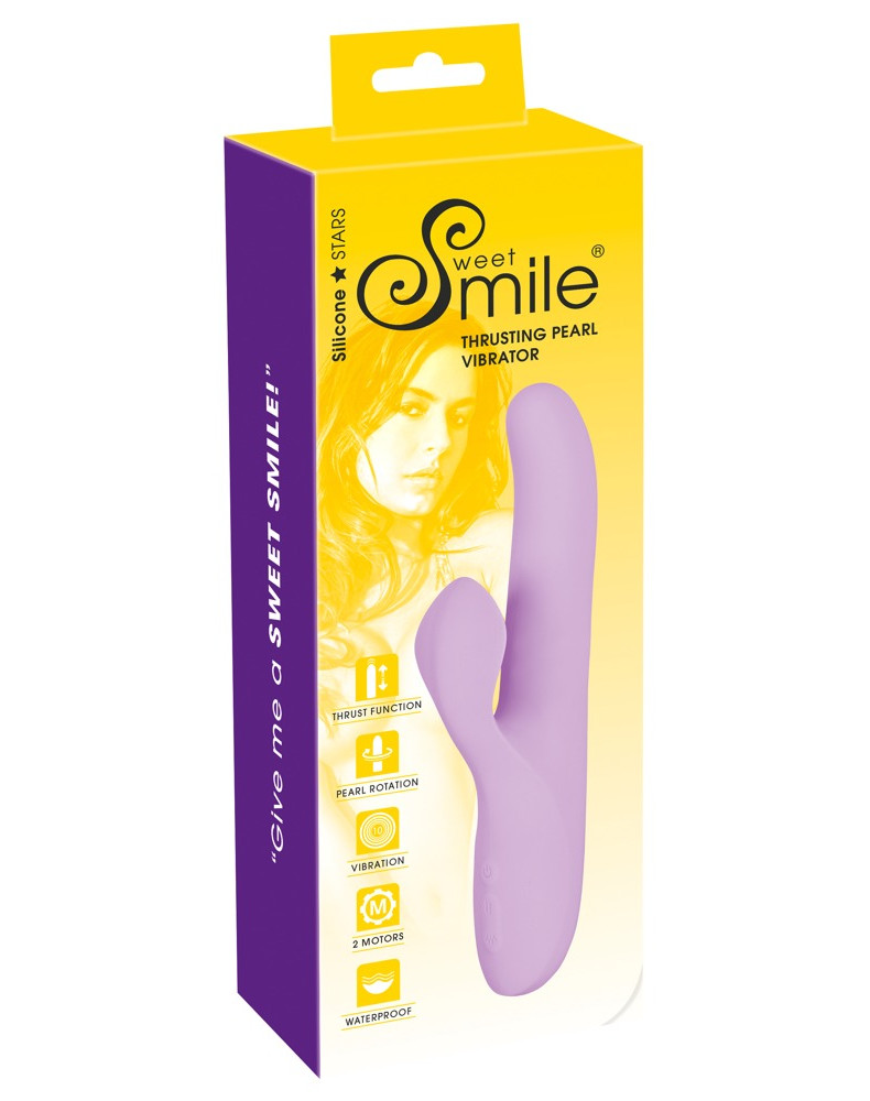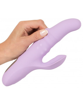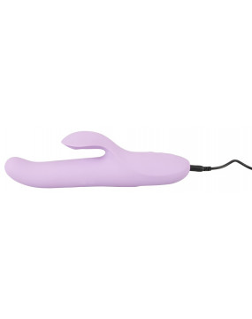 Thrusting vibrator with a flexible clitoral vibrator and rotating beads in the shaft for orgasmic pleasure that even reaches the G-spot. It has 2 powerful motors – one in the clitoral stimulator which has 10 different vibration modes and one in the shaft that has 5 fancy thrusting/rotation modes. All the modes can be controlled separately at the push of a button. The Thrusting and Rotating Vibrator is waterproof which means that it can be used in the bath or the shower as well! It is made out of silicone with a soft touch texture which feels great against the skin during pleasure. It can be recharged with the USB cable.