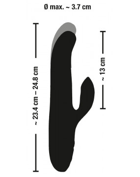 Complete length 23.4 cm to 24.8 cm, insertion length 13 cm, Ø 2.8 to 3.7 cm. Weight 306 g. Silicone, PU, ABS.