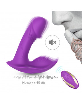 Stymuluje jednocześnie punkt G, pochwę i łechtaczkę dzięki 9 potężnym trybom wibracji. Wibrator można bardzo dyskretnie nosić w bieliźnie. Można nim sterować za naciśnięciem przycisku lub za pomocą pilota. Możliwość ładowania za pomocą dołączonego kabla USB.