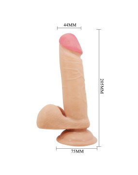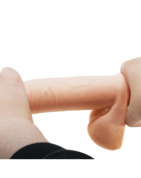 Oto realistyczne dildo z przyssawką, które zapewnia niezliczone orgazmiczne przyjemności i kusi autentycznym wyglądem i dotykiem. Zacznij podróż w świat rozkoszy z tym solidnym dildo, które posiada ruchomą skórę i rdzeń z kręgów. Fantastycznie dildo, pokryte realistycznyi żyłami, reaguje na ciepło Twojej skóry, gwarantując niezwykle autentyczne doznania. Rozkoszuj się fantazjami namiętności i niekończącej się przyjemności z tym dildem wykonanym z materiału TPR! Solidna przyssawka u podstawy pozwala uwolnić Twoje ręce, aby mogły wykonywać wszelkie możliwe sztuczki.