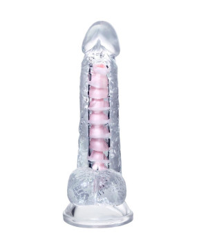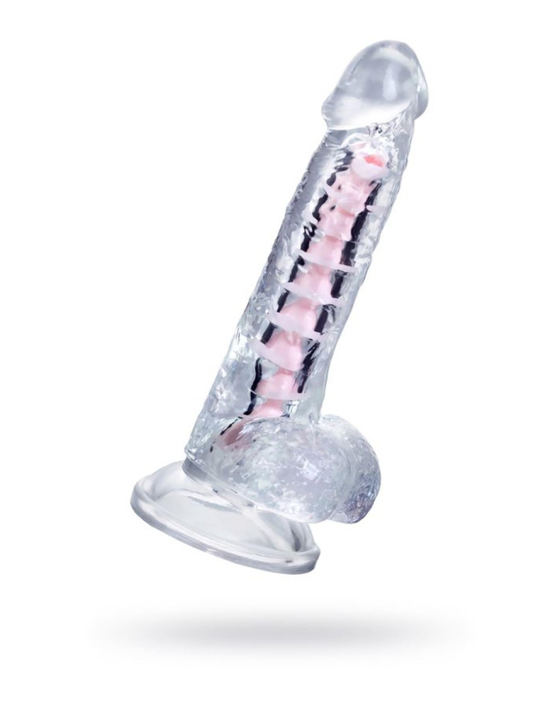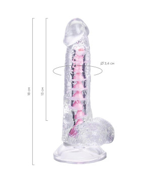 Zabawka posiada wyraźnie zaznaczoną główkę oraz wypukłe żyłki, które dodają dodatkowej stymulacji poprzez delikatny masaż ścianek pochwy. Przyssawka u podstawy umożliwia stabilne przymocowanie do każdej płaskiej powierzchni, co pozwala na zabawę bez użycia rąk i różnorodne pozycje.