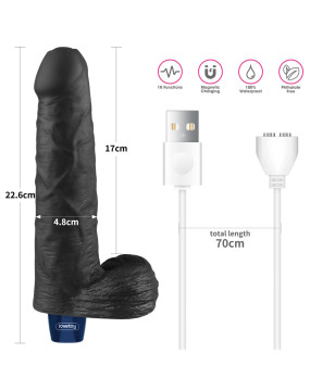9" REAL SOFTEE Rechargeable TPE Vibrating Dildo(Black)
