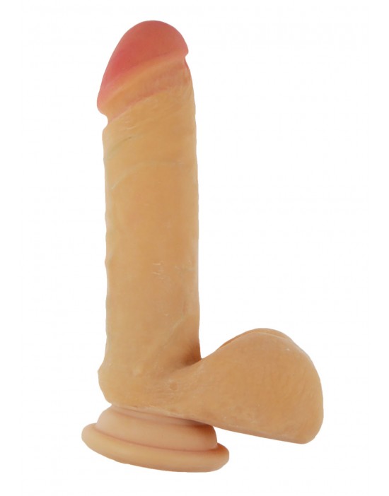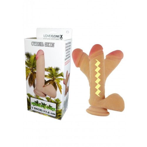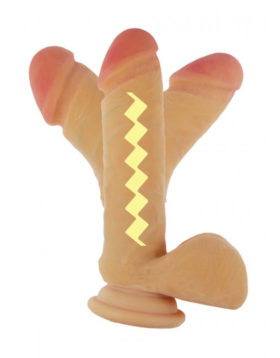Wzorowane na realnym penisie, wyraźnie wyodrębnione tekstury żył oraz jądra.