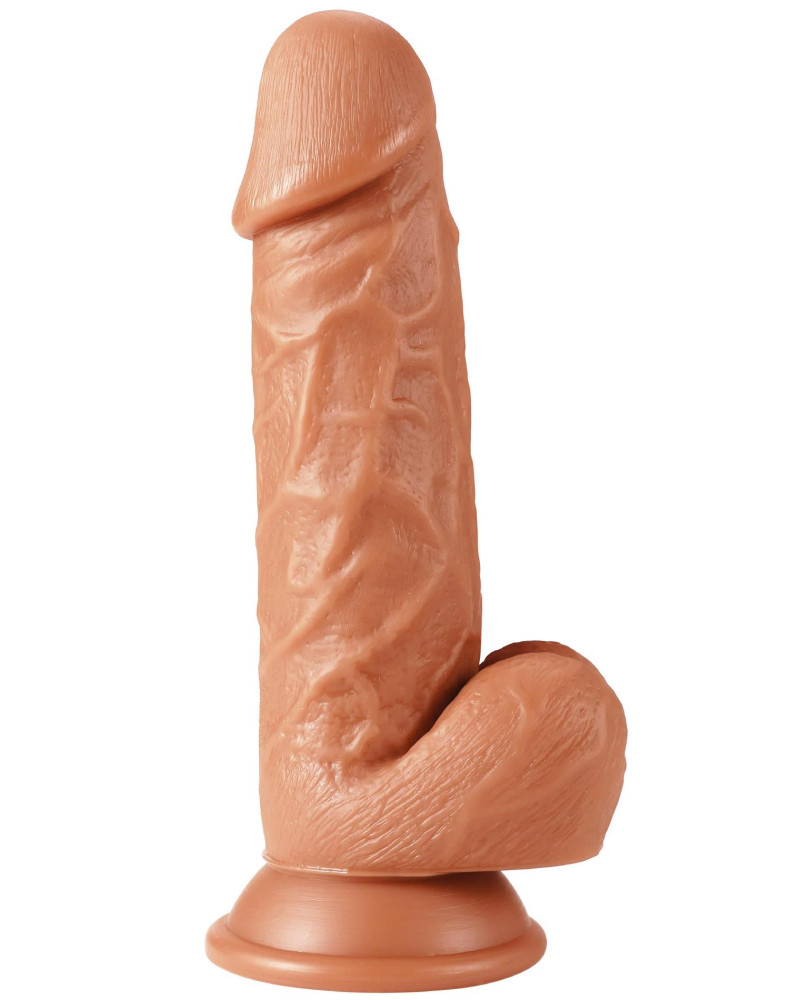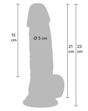 Każdy szczegół został wiernie odwzorowany – od żyłkowanej powierzchni trzonu po wyraźnie zarysowaną główkę, a realistyczne jądra zapewniają pewny chwyt i autentyczny wygląd.