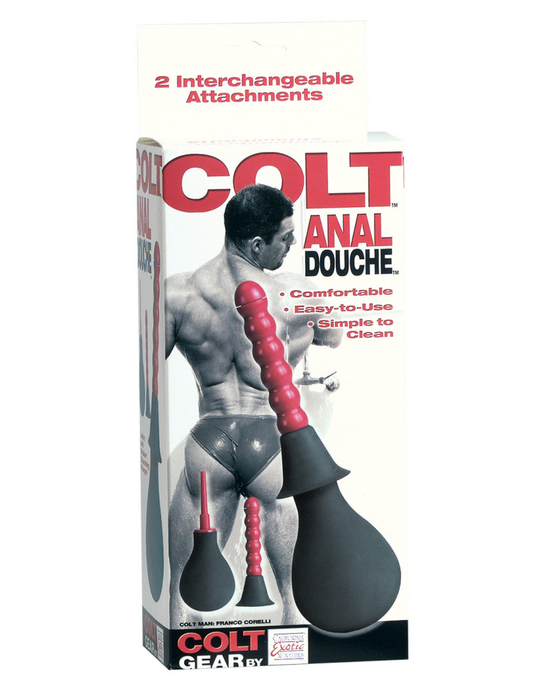 Colt Anal Douche jest niezbędnym urządzeniem dla osób pragnących zachować czystość i bezpieczeństwo podczas zabaw analnych lub przed wykonaniem masażu prostaty w celach zdrowotnych.Wydajny system obejmuje dużą gruszkę ściskającą, końcówkę aplikatora poślizgowego i ząbkowaną sondę.Łatwy w użyciu i czyszczeniu.