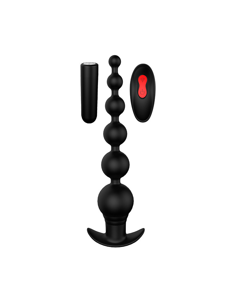 Vibrating Beaded Silicone Prostate Massager with Loop - Black