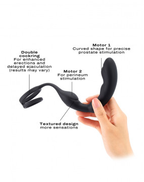 Podwójny masażer prostaty i podwójny pierścień na penisa, ta miękka silikonowa zabawka ma kilka sztuczek w rękawie.