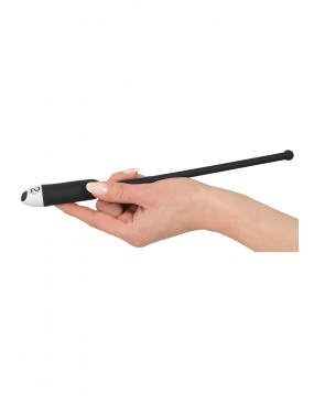 Bardzo długi stymulator prostaty zakończony kulką i 7 trybami wibracji za naciśnięciem przycisku. Czarny. Całkowita długość 27 cm, głębokość wsuwania 18,7 cm, Ø 0,8-1,1 cm. Silikon z powłoką PU, ABS.