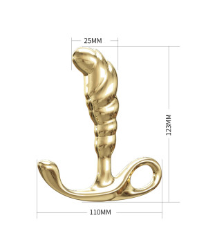 Ten masażer prostaty P-spot wykonany ze stopu cynku to elegancka i skuteczna zabawka, odpowiednia dla użytkowników na każdym poziomie zaawansowania. Posiada idealnie gładką, lśniącą złotą powierzchnię, która zapewnia łatwe i przyjemne wprowadzenie. Zwężana końcówka umożliwia delikatną i kontrolowaną penetrację, natomiast wąska szyjka gwarantuje wygodne i bezpieczne utrzymanie zabawki w miejscu. Wyraźnie zaokrąglona główka została specjalnie zaprojektowana do precyzyjnej stymulacji prostaty, oferując intensywne doznania. Ten luksusowy gadżet sprawdzi się również przy pośredniej stymulacji punktu G. Kompatybilny z lubrykantami na bazie wody, silikonu lub oleju. Materiał: stop cynku Powierzchnia: ultra gładka, złocona Funkcje: stymulacja prostaty i punktu G, ergonomiczny kształt, bezpieczny uchwyt Zalecenie: używać z lubrykantem na bazie wody, silikonu lub oleju