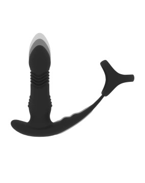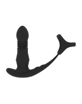 Vibrating and Thrusting Silicone Prostate Massager with Tri O Cockring - Black
