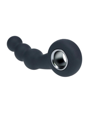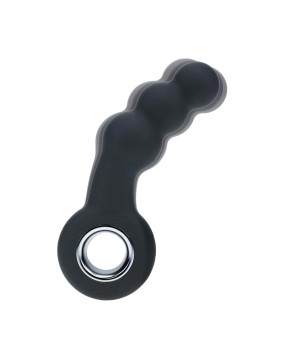 Vibrating Beaded Silicone Prostate Massager with Loop - Black