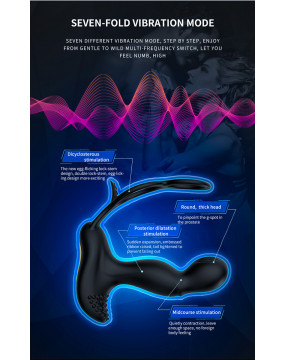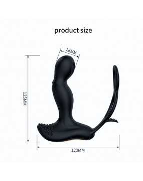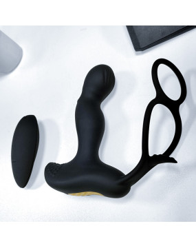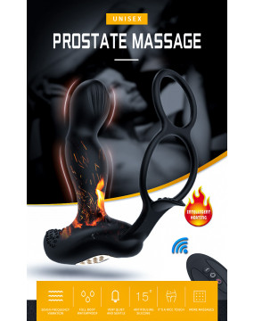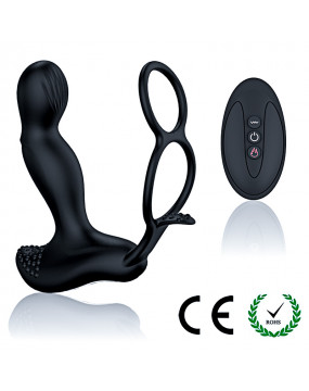 MASAŻER PROSTATY Z BEZPRZEWODOWYM PILOTEM ORAZ PODWÓJNYM PIERŚCIENIEM NA JĄDRA