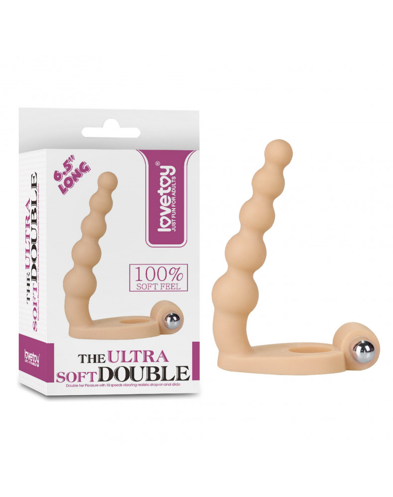 Elastyczny pierścień na penisa z wibratorem i dildo do zabawy z podwójną penetracją