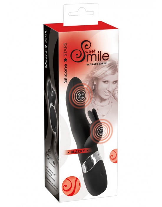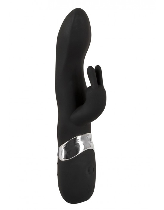 Black vibrator with 2 powerful motors, rabbit-shaped clit tickler and 7 vibration modes at the push of a button. Rechargeable using the included USB cable! Complete length approx. 21 cm, Ø 3–3.6 cm. Material: silicone, ABS, phthalate-free according to EU Regulation REACH.