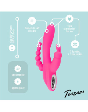 Pozwól sobie na maksymalne doznania dzięki naszemu podwójnemu wibratorowi króliczkowi, który jednocześnie stymuluje łechtaczkę, krocze, punkt G oraz zapewnia intensywną stymulację analną. Wyposażony w 10 potężnych trybów wibracji, które można łatwo kontrolować za pomocą przycisków na podstawie, wibrator oferuje 3 ustawienia wibracji oraz 7 prędkości, dostosowując się do Twoich potrzeb i nastroju.