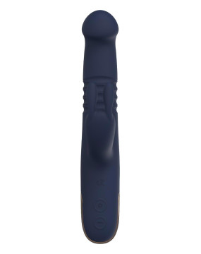 Wykonany z ciemnoniebieskiego silikonu i ozdobiony złotymi detalami, ten wibrator łączy elegancję z nowoczesną technologią.