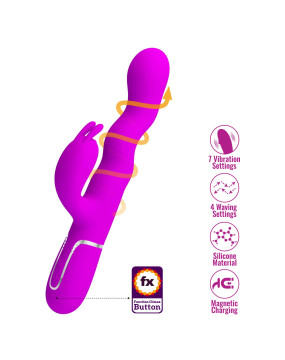 Wibrator Bruno z kolekcji Pretty Love jest wykonany w 100% z silikonu, wyposażony w dwa wibratory, które mają 7 różnych programów sterujących. Unikalna konstrukcja zabawki pozwala podczas użytkowania zmaksymalizować wpływ na strefę punktu G, nie przestając stymulować łechtaczki.