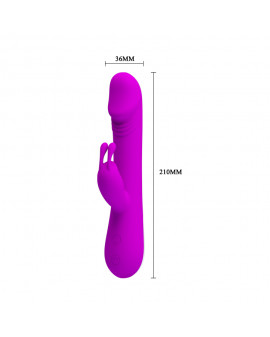 Silikonowy wibrator królik. Posiada 30 trybów wibracji, łatwe sterowanie za pomocą przycisków na dole. Materiał wykonany jest z aksamitnego silikonu. Całkowita długość wynosi 21 cm, długość robocza wynosi 12 cm, maksymalna średnica to 3,5 cm, a długość stymulatora łechtaczki wynosi 6 cm, średnica 2,5 cm.