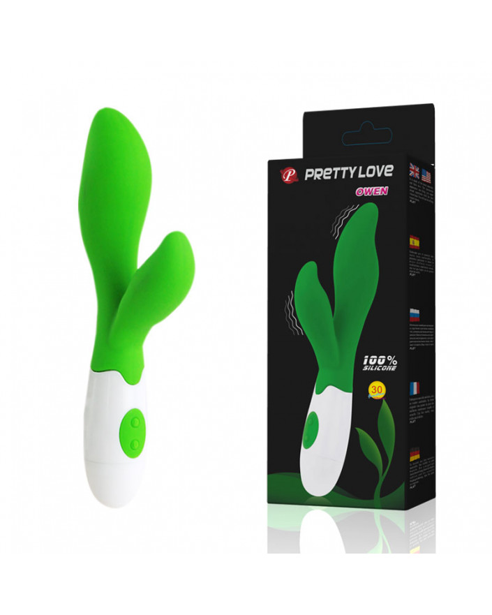 Wibrator PRETTY LOVE OWEN Zakrzywiony wibrator z delikatnym procesem erotycznego masażu łechtaczki zapewni najbardziej realistyczne doznania i fantastyczną przyjemność. Ma 30 trybów wibracji długość - 20,5 cm, średnica - 3,6 cm, kolor - zielony, materiał - silikon.