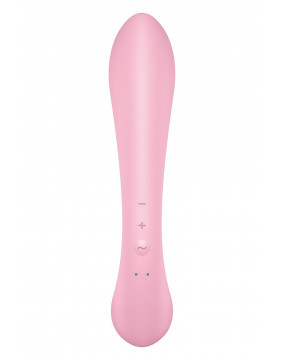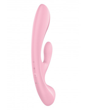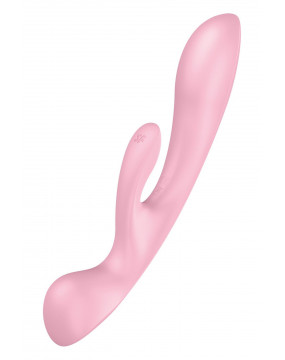 Satisfyer Triple Oh to prawdziwie wszechstronne urządzenie, które rozpieści Twoje miejsca intymne. Zadba o Ciebie zarówno jako wibrator typu króliczek, jak i masażer. Trzy potężne silniczki Satisfyer Triple Oh sprawią, że będziesz zachwycona. Dwa z silniczków znajdują się w trzonku i stymulatorze łechtaczki, dzięki którym urządzenie jednocześnie stymuluje punkt G oraz łechtaczkę z pomocą intensywnych wibracji. 12 programów wibracyjnych zapewnia różnorodność. Trzeci silniczek znajduje się w głowicy masującej, która pomoże uwolnić całe napięcie z Twojego ciała. Dzięki lekko spiczastemu kształtowi może działać na wszelkie wybrane obszary w bardziej ukierunkowany sposób. Dzięki powierzchni wykonanej z miękkiego silikonu Satisfyer Triple Oh jest szczególnie delikatny dla skóry. Dla wzbogacenia chwil relaksu, możesz z urządzenia również korzystać pod wodą, dzięki wodoodpornemu wykończeniu (IPX7). Jedwabiście gładki silikon klasy medycznej jest wyjątkowo śliski i szybko się nagrzewa pod wpływem ciepła ciała. Produkt można łatwo oczyścić ciepłą wodą z odrobiną mydła lub specjalnym środkiem dezynfekującym do gadżetów intymnych. Aby uzyskać maksymalną przyjemność, używaj lubrykantów na bazie wody. Triple Oh jest wyposażony we wbudowane akumulatory, dzięki czemu z łatwością można go ładować w sposób przyjazny dla środowiska.